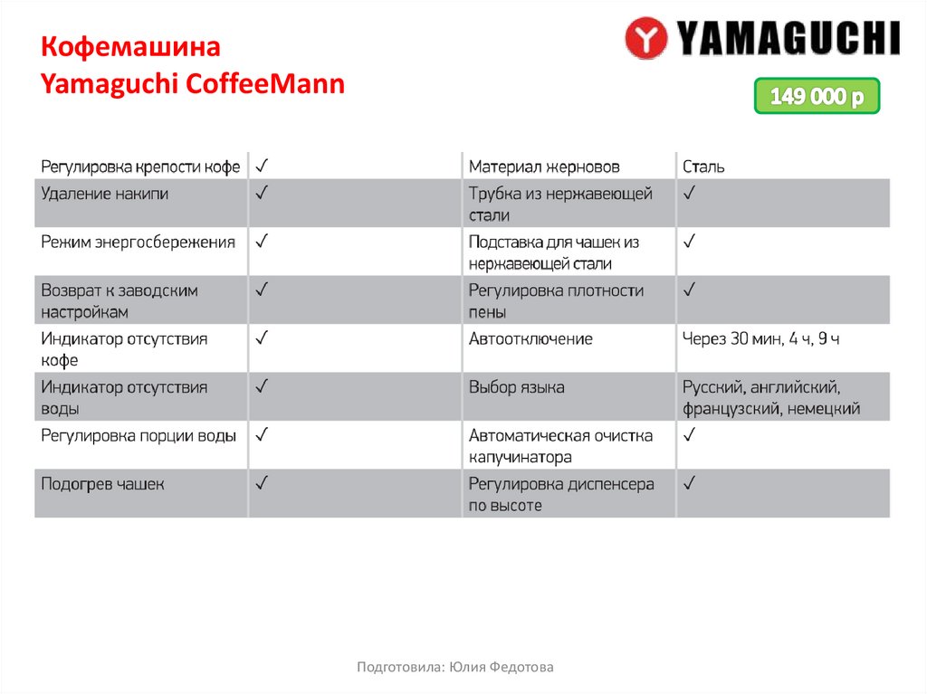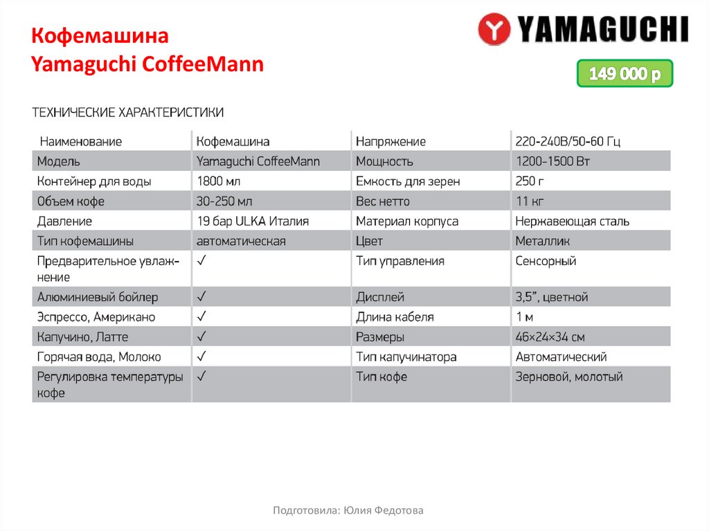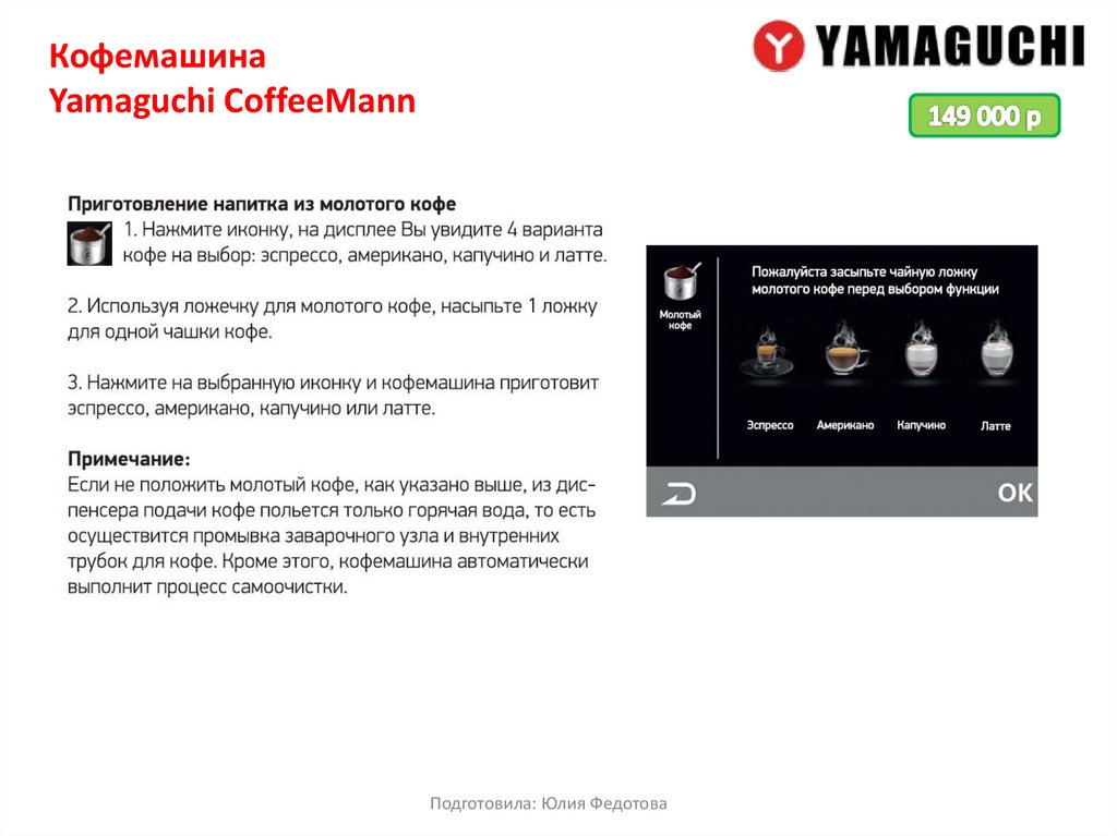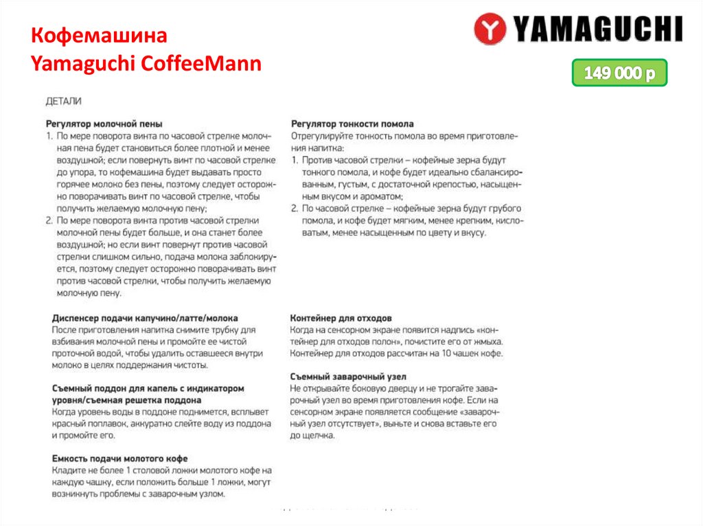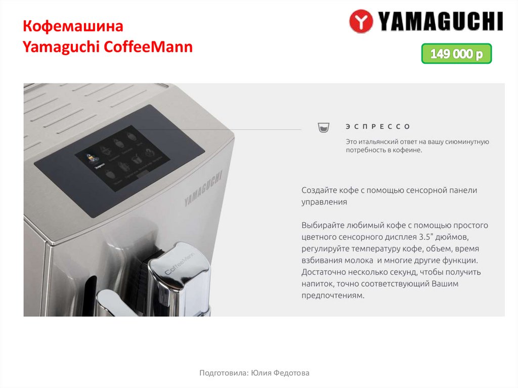 Кофемашина Yamaguchi предлагает широкий выбор современных и