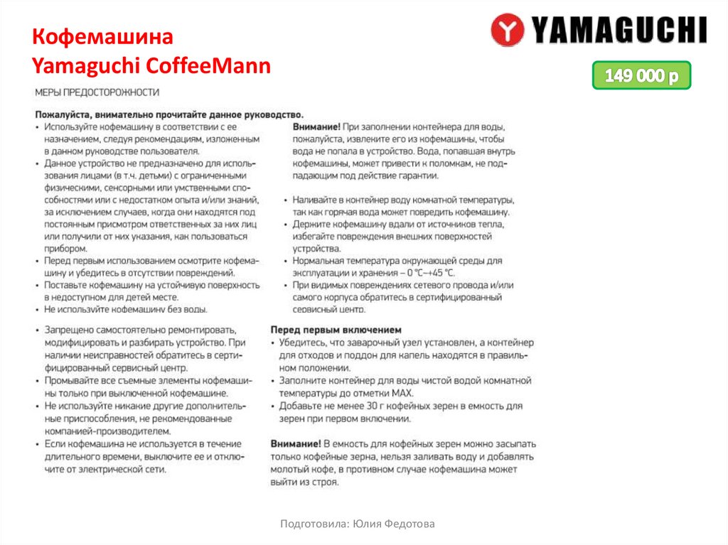 Кофемашина Yamaguchi CoffeeMann