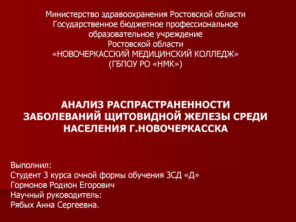 1. Министерство здравоохранения Ростовской области Государственное бюджетное профессиональное образовательное учреждение