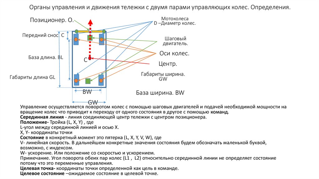 Органы управления и движения тележки с двумя парами управляющих колес. Определения.Мотоколеса