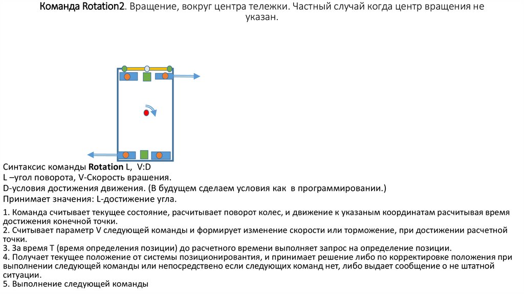 Команда Rotation2. Вращение, вокруг центра тележки. Частный случай когда центр вращения неуказан.