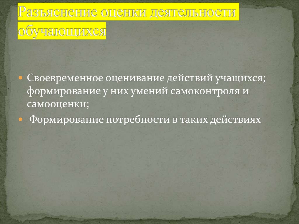 Своевременное оценивание действий учащихся;формирование у них умений самоконтроля и