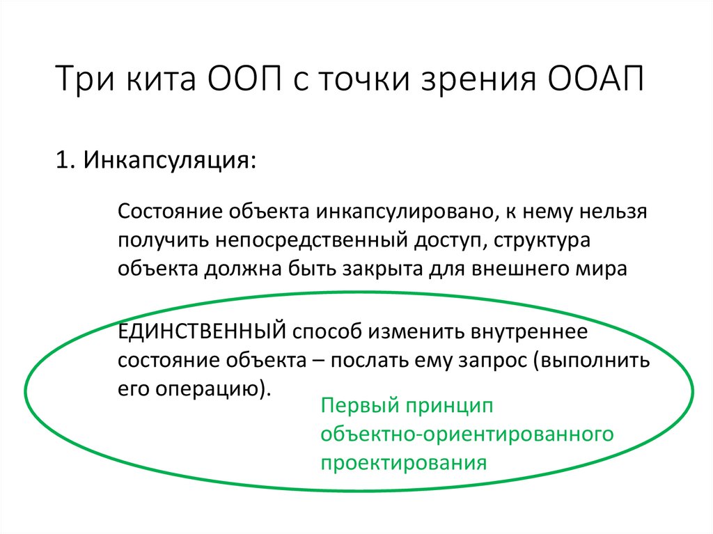 Три кита ООП с точки зрения ООАП1. Инкапсуляция: