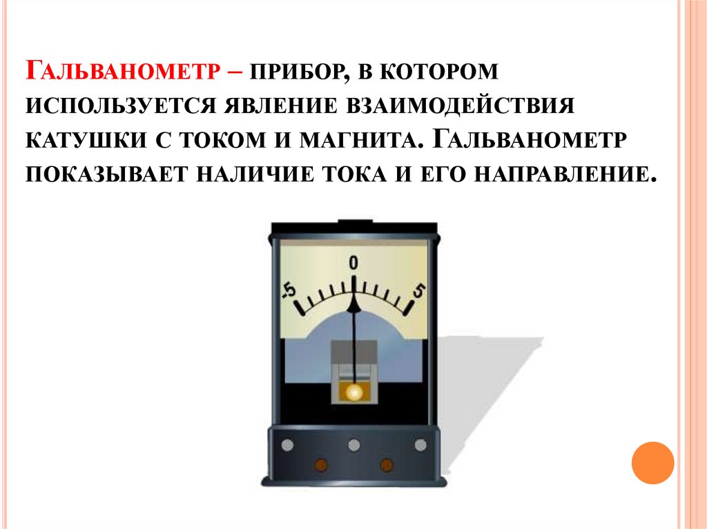 ГАЛЬВАНОМЕТР – ПРИБОР, В КОТОРОМИСПОЛЬЗУЕТСЯ ЯВЛЕНИЕ ВЗАИМОДЕЙСТВИЯ