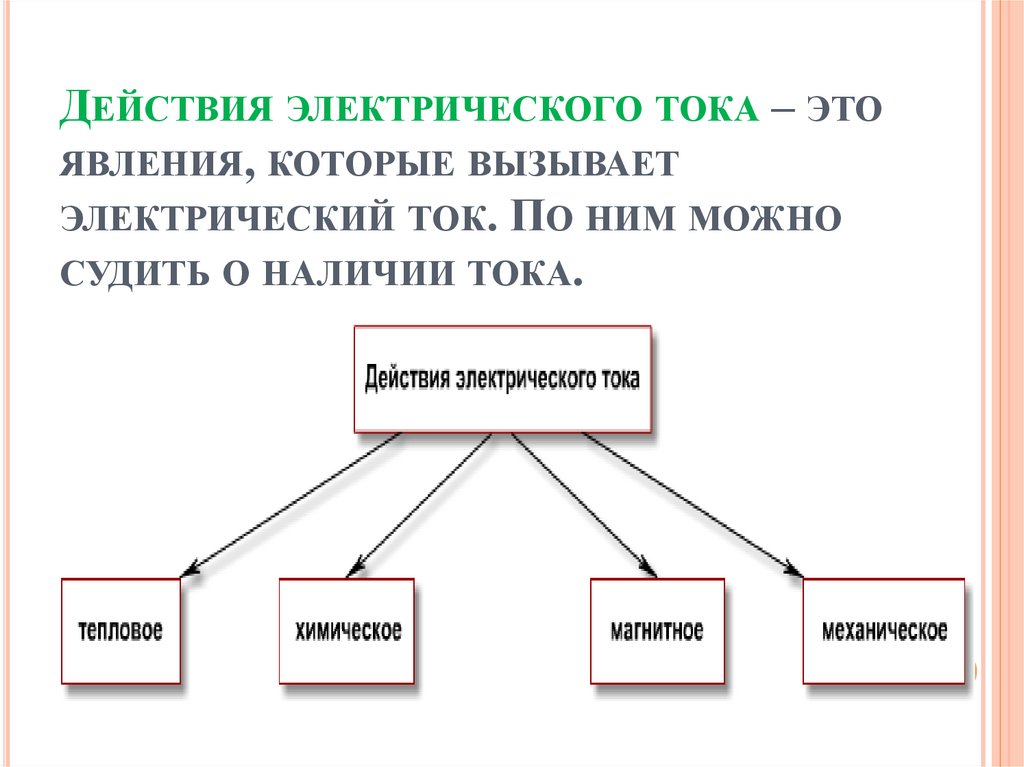 ДЕЙСТВИЯ ЭЛЕКТРИЧЕСКОГО ТОКА – ЭТОЯВЛЕНИЯ, КОТОРЫЕ ВЫЗЫВАЕТ