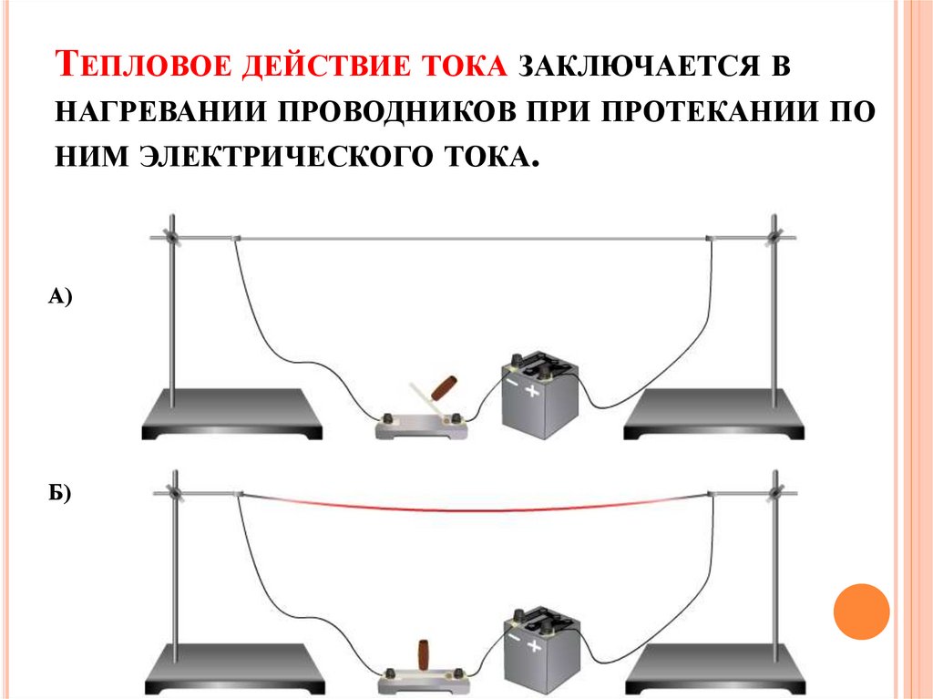 ТЕПЛОВОЕ ДЕЙСТВИЕ ТОКА ЗАКЛЮЧАЕТСЯ ВНАГРЕВАНИИ ПРОВОДНИКОВ ПРИ ПРОТЕКАНИИ ПО