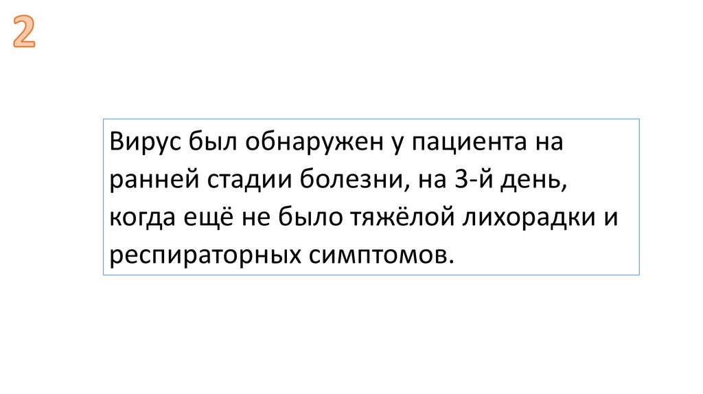 Вирус был обнаружен у пациента наранней стадии болезни, на 3-й день,