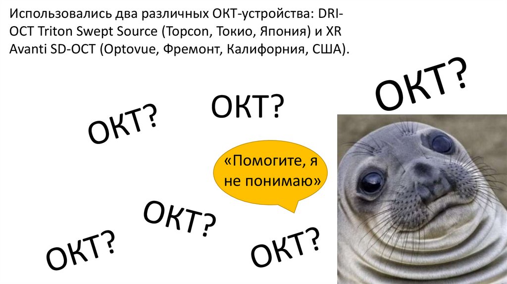 Использовались два различных ОКТ-устройства: DRIOCT Triton Swept Source (Topcon, Токио, Япония) и XRAvanti SD-OCT (Optovue, Фремонт, Калифорния, США).