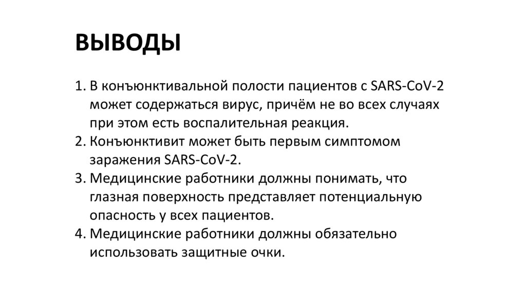 ВЫВОДЫ1. В конъюнктивальной полости пациентов с SARS-CoV-2