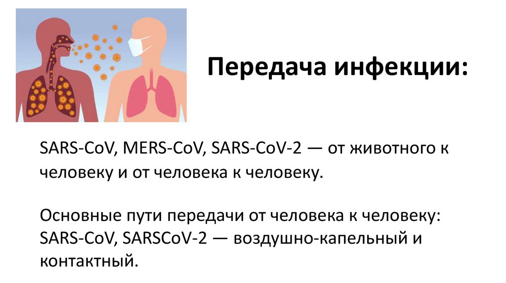 Передача инфекции:SARS-CoV, MERS-CoV, SARS-CoV-2 — от животного к