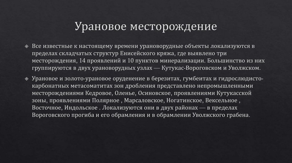 Металлические месторождения и полезные ископаемые Уральской складчатой системы
