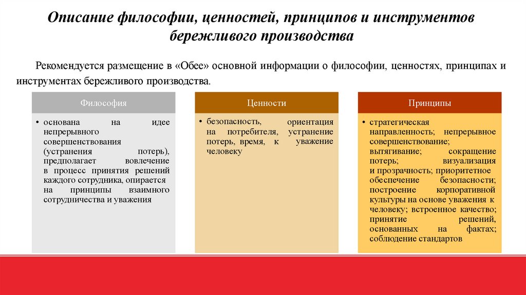 Описание философии, ценностей, принципов и инструментовбережливого производства