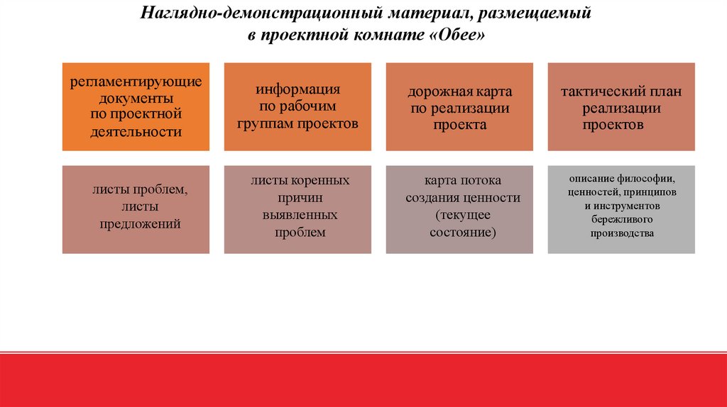 Наглядно-демонстрационный материал, размещаемыйв проектной комнате «Обее»