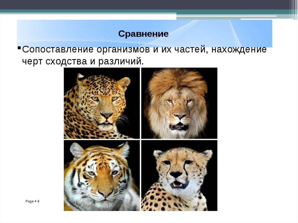Составление сравнительных характеристик. Выявление сходства и различия между организмами и их частями