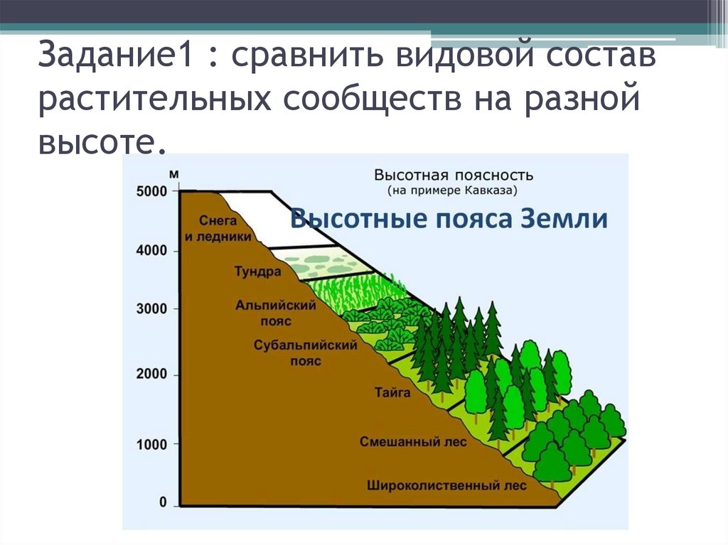 Задание1 : сравнить видовой составрастительных сообществ на разной