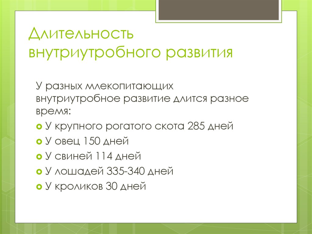 Длительностьвнутриутробного развития