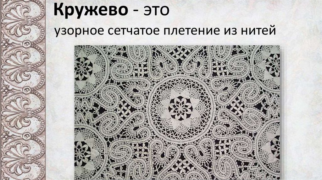 Кружево - этоузорное сетчатое плетение из нитей