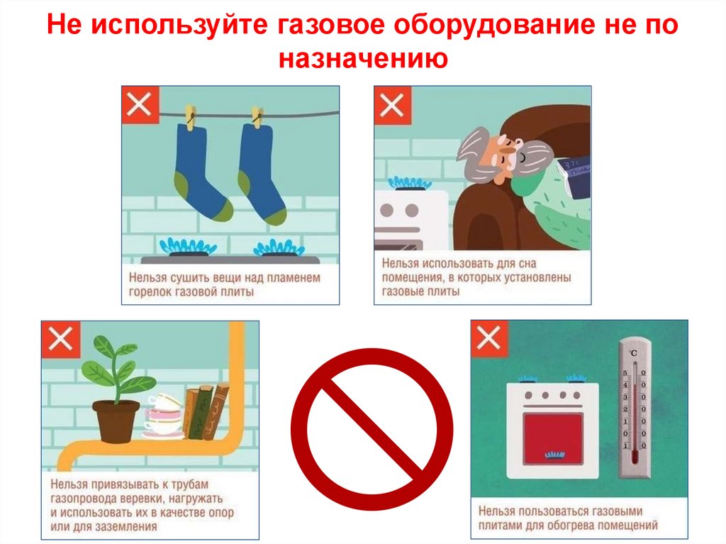 Не используйте газовое оборудование не поназначению