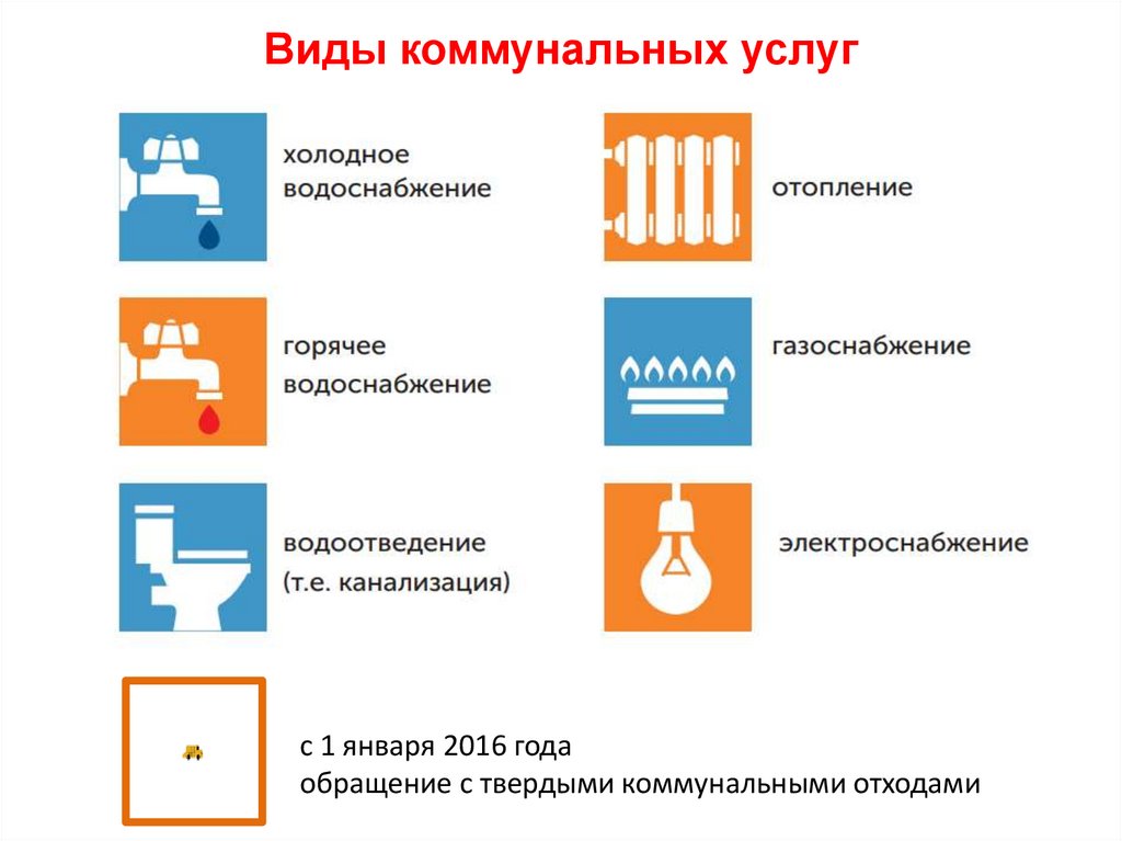 Виды коммунальных услугс 1 января 2016 года