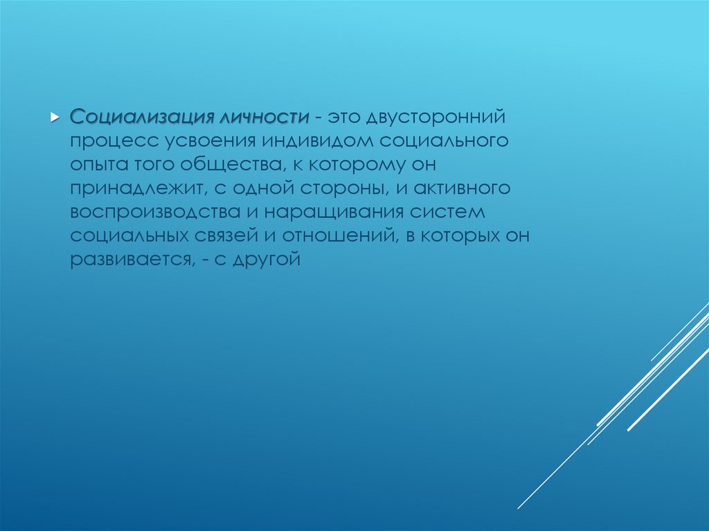 Социализация личности - это двустороннийпроцесс усвоения индивидом социального