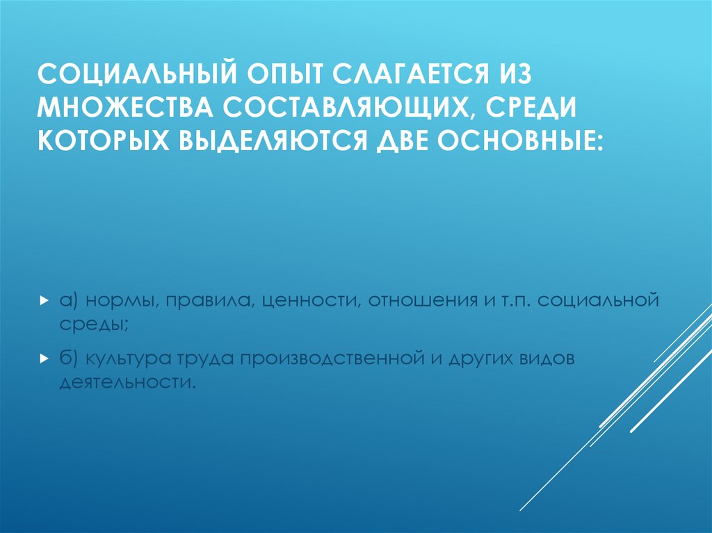 СОЦИАЛЬНЫЙ ОПЫТ СЛАГАЕТСЯ ИЗМНОЖЕСТВА СОСТАВЛЯЮЩИХ, СРЕДИ
