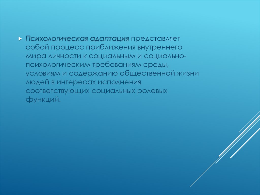Психологическая адаптация представляетсобой процесс приближения внутреннего