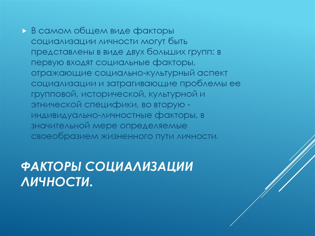 ФАКТОРЫ СОЦИАЛИЗАЦИИ