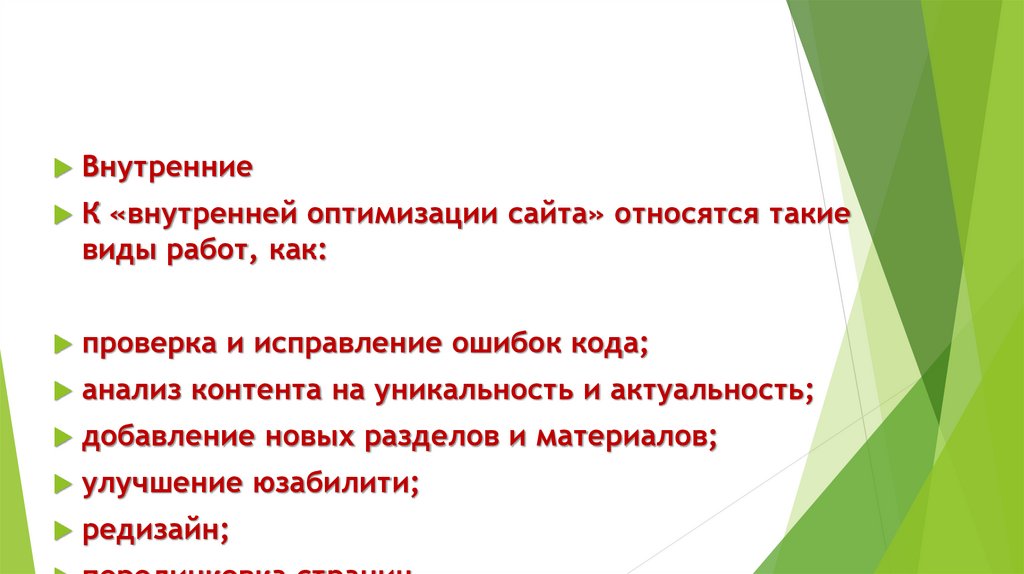 ВнутренниеК «внутренней оптимизации сайта» относятся такие
