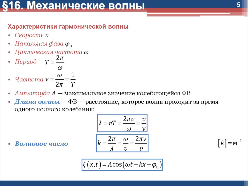 • Длина волны — ФВ — расстояние, которое волна проходит за время