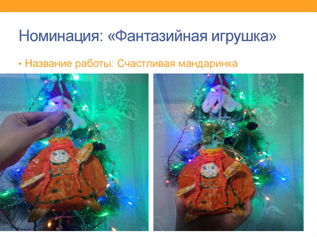 Номинация: «Фантазийная игрушка»• Название работы: Счастливая мандаринка