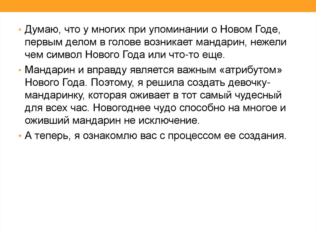 Нового Года. Поэтому, я решила создать девочкумандаринку, которая оживает в тот самый чудесный