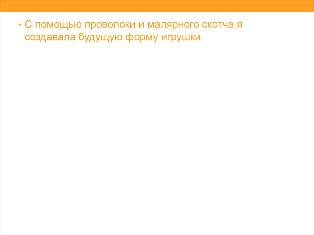 • С помощью проволоки и малярного скотча ясоздавала будущую форму игрушки.