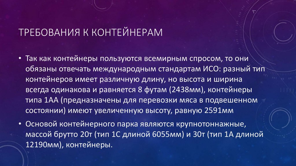 ТРЕБОВАНИЯ К КОНТЕЙНЕРАМ• Так как контейнеры пользуются всемирным спросом, то они