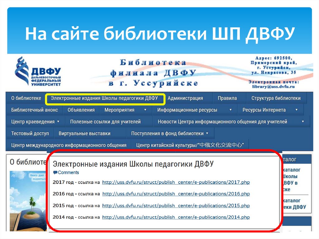 На сайте библиотеки ШП ДВФУ3.