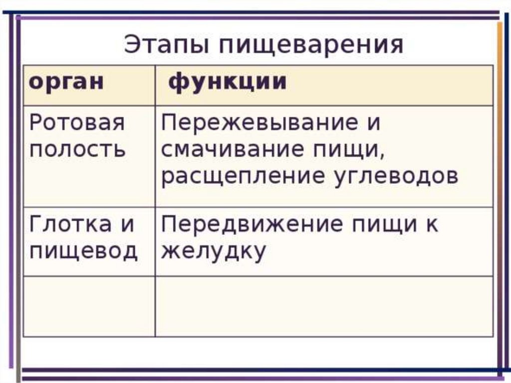 Пищеварение в ротовой полости и в желудке