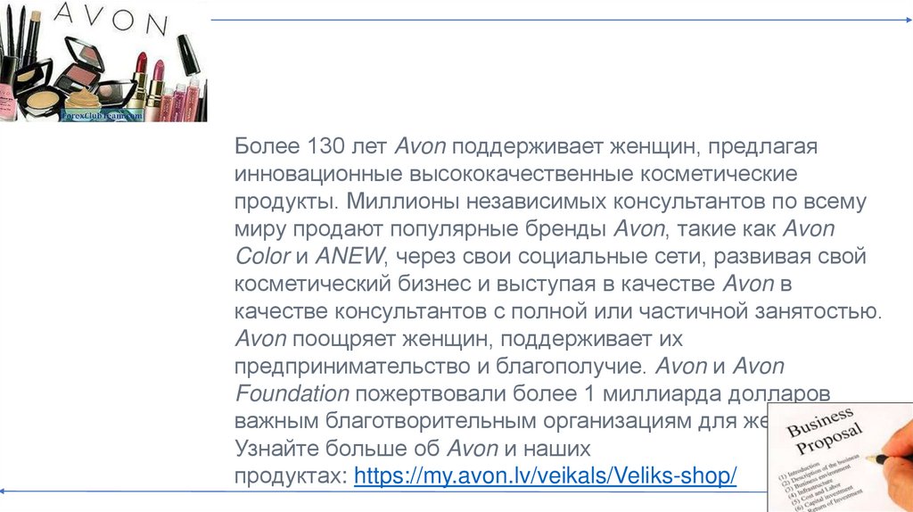 Более 130 лет Avon поддерживает женщин, предлагаяинновационные высококачественные косметические
