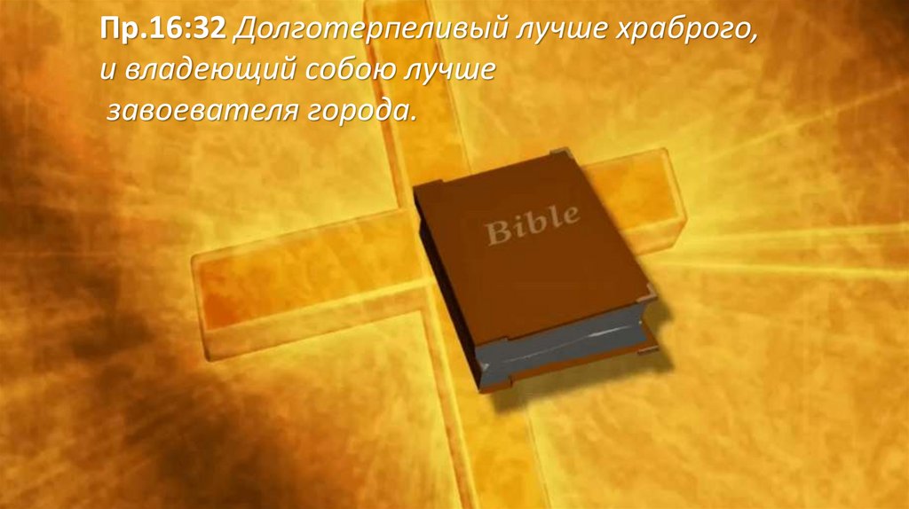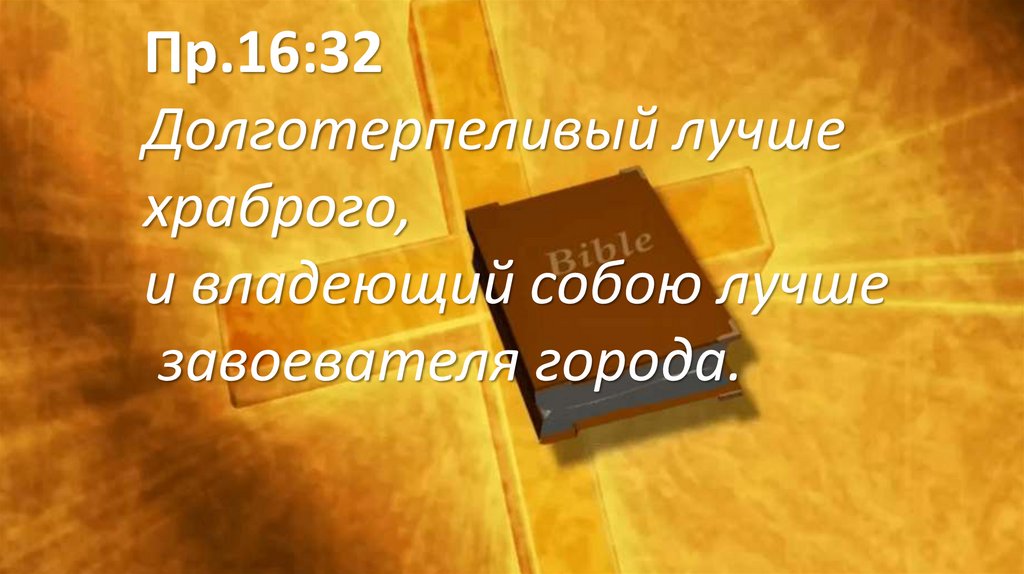 Пр.16:32 Долготерпеливый лучше храброго,и владеющий собою лучше