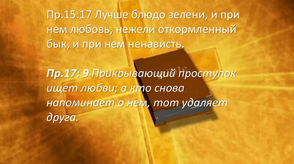 Пр.15:17 Лучше блюдо зелени, и принем любовь, нежели откормленный