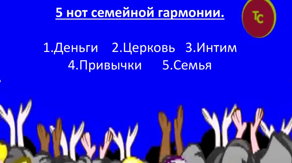 5 нот семейной гармонии.1.Деньги 2.Церковь 3.Интим