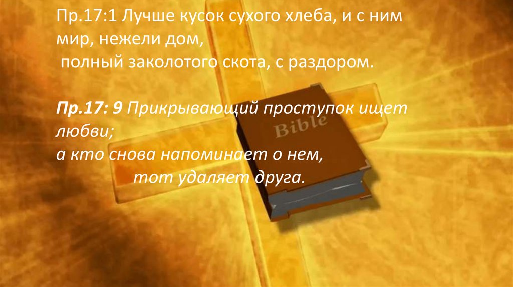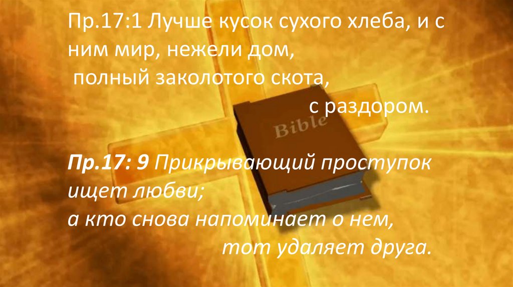 Пр.17:1 Лучше кусок сухого хлеба, и сним мир, нежели дом,