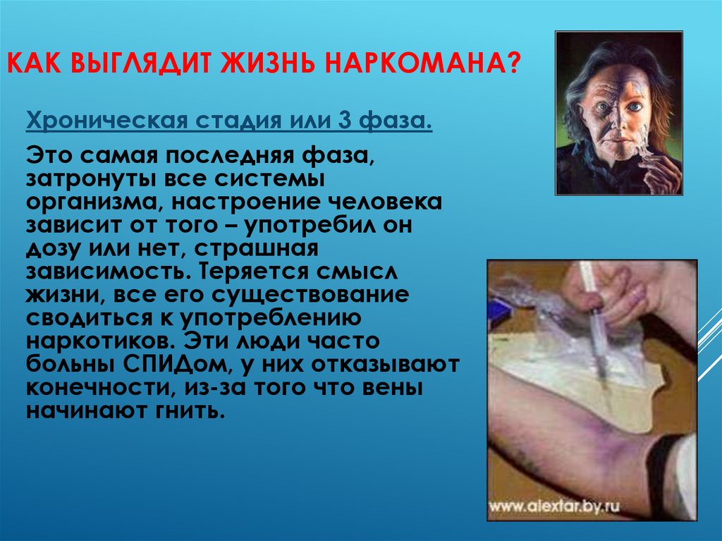 КАК ВЫГЛЯДИТ ЖИЗНЬ НАРКОМАНА?Хроническая стадия или 3 фаза.