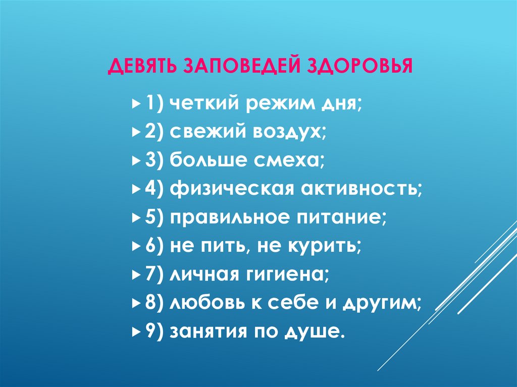 ДЕВЯТЬ ЗАПОВЕДЕЙ ЗДОРОВЬЯ1)