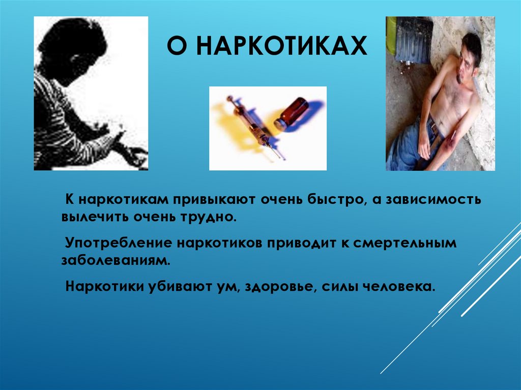 О НАРКОТИКАХК наркотикам привыкают очень быстро, а зависимость