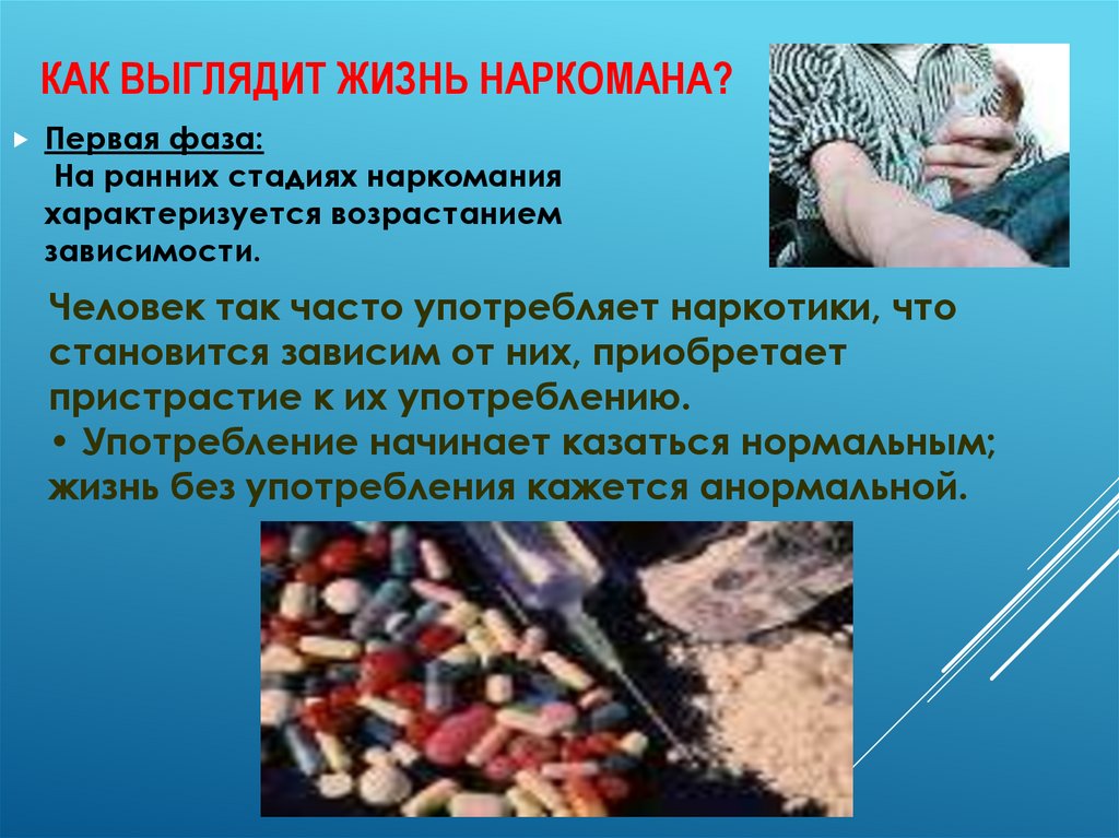 КАК ВЫГЛЯДИТ ЖИЗНЬ НАРКОМАНА?Первая фаза: