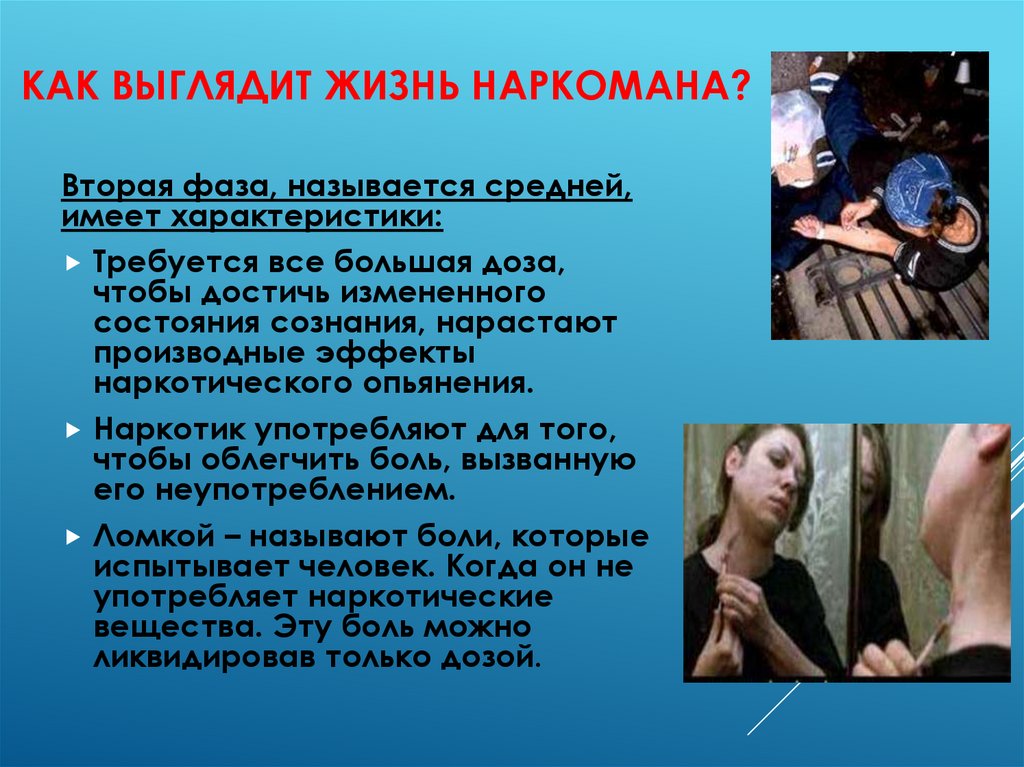 КАК ВЫГЛЯДИТ ЖИЗНЬ НАРКОМАНА?Вторая фаза, называется средней,
