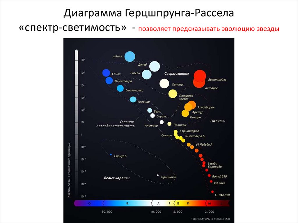 Диаграмма Герцшпрунга-Рассела«спектр-светимость» - позволяет предсказывать эволюцию звезды