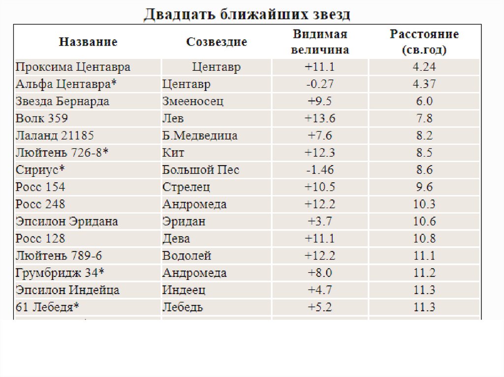 Физические характеристики звездРазмер
