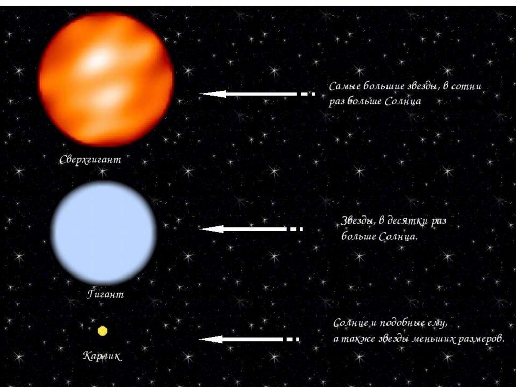 Размеры• сверхгиганты