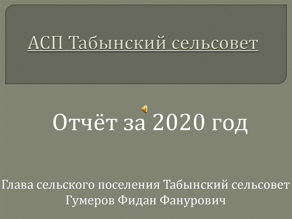 Отчёт за 2020 годГлава сельского поселения Табынский сельсовет