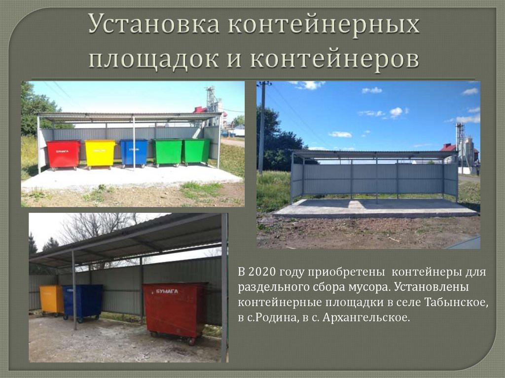 В 2020 году приобретены контейнеры дляраздельного сбора мусора. Установлены
